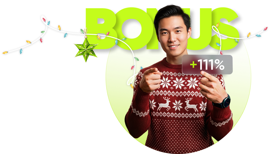 Tahun baru ini, Anda mendapatkan 111% modal tambahan, yang membuat saldo Anda lebih dari dua kali lipat sehingga Anda bisa membuka posisi lebih besar dan mengejar keuntungan yang lebih tinggi.